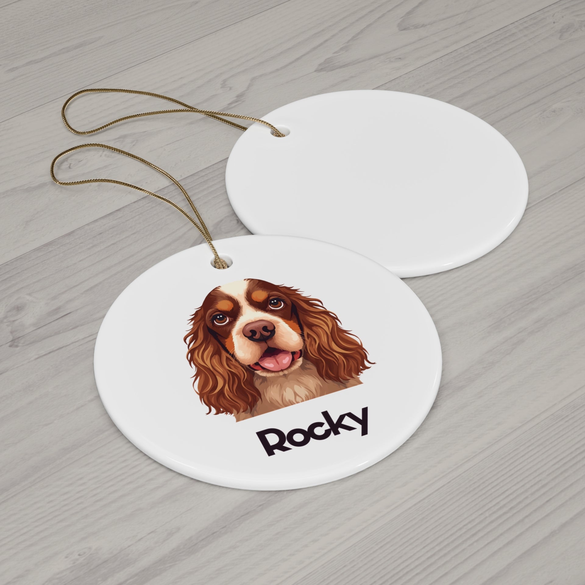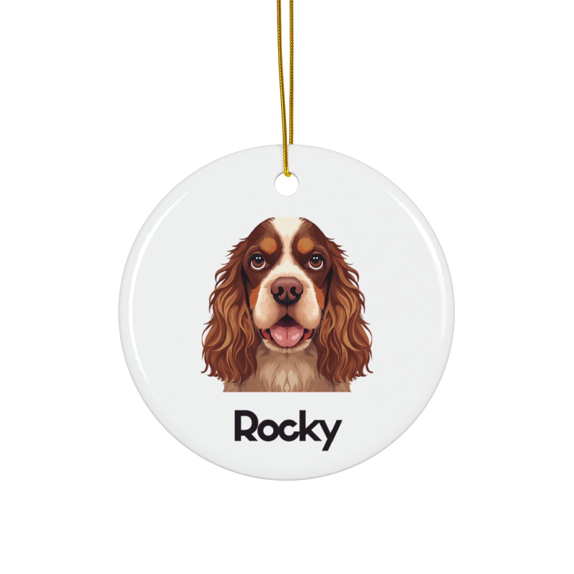 Personalized Cocker Spaniel Dog Face Christmas Ornament with Dogs Name | Ceramic Ornament